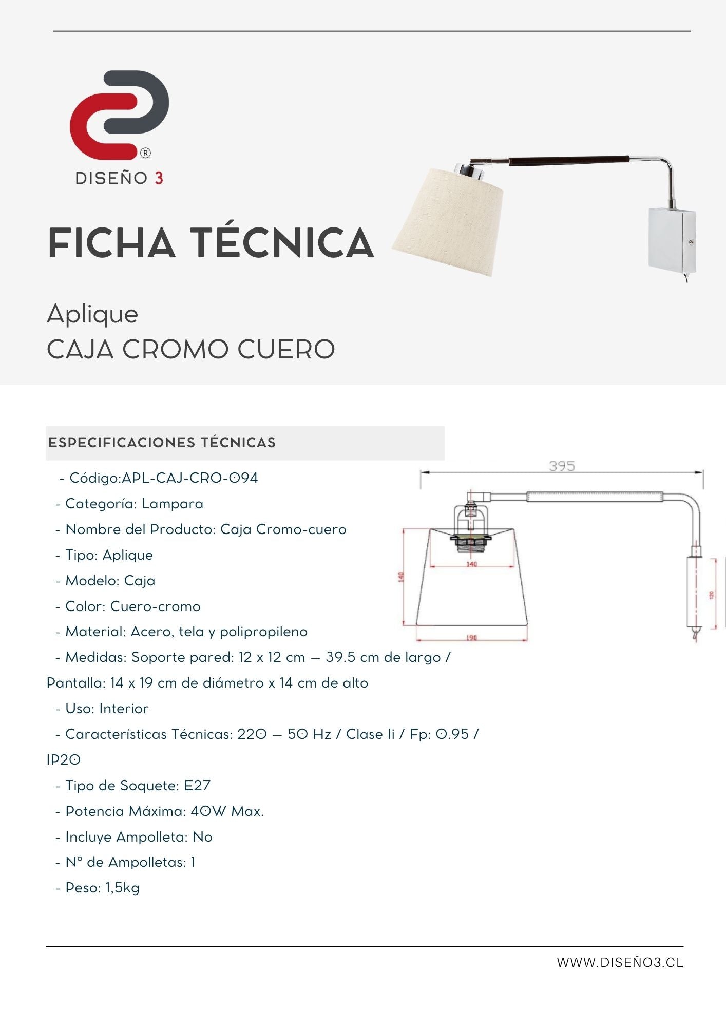 MEDIDAS: Soporte pared: 12 x 12 cm – 39.5 cm de largo / Pantalla: 14 x 19 cm de diámetro x 14 cm de alto