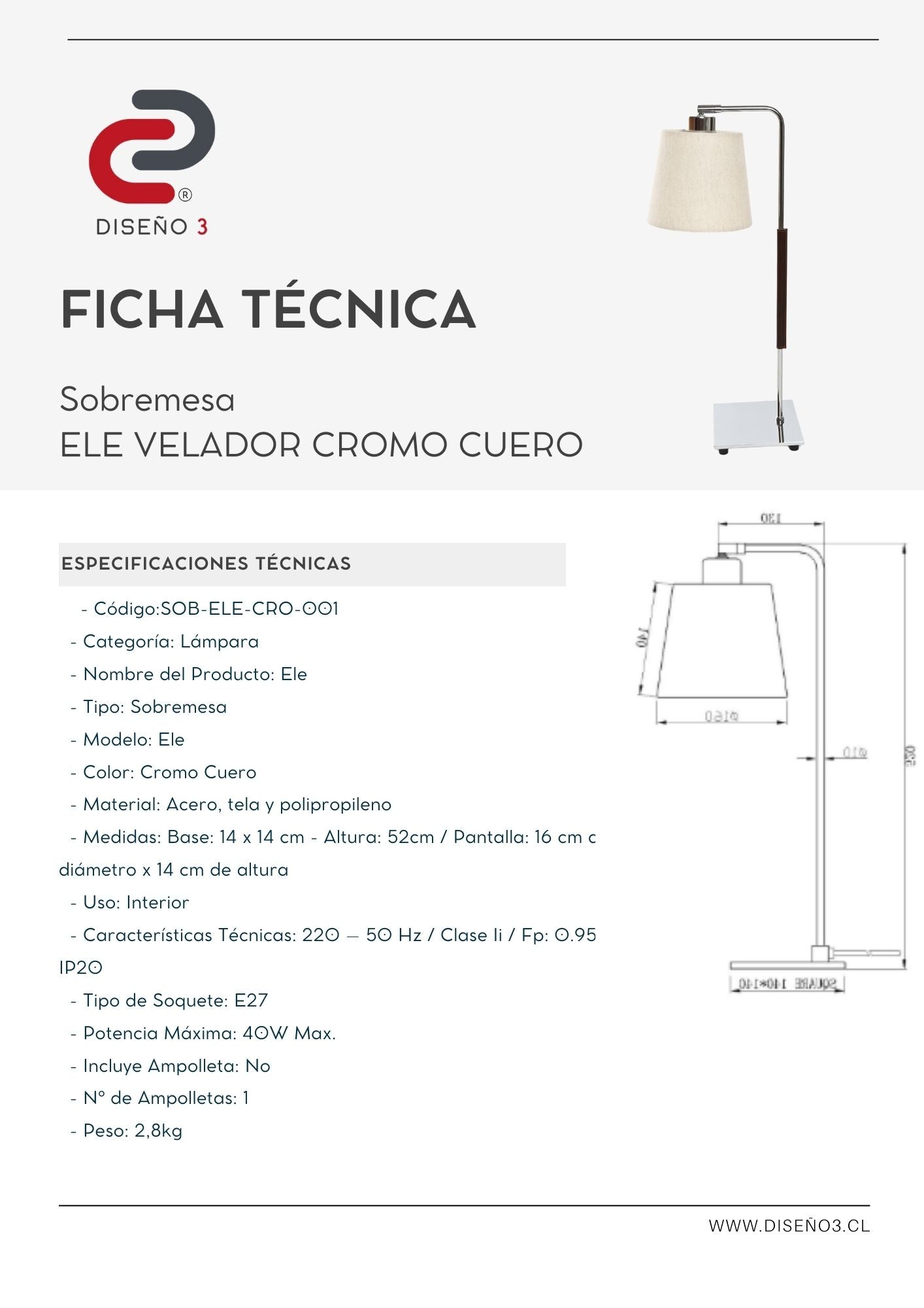 Medidas: Base: 14 x 14 cm - Altura: 52cm / Pantalla: 16 cm de diámetro x 14 cm de altura