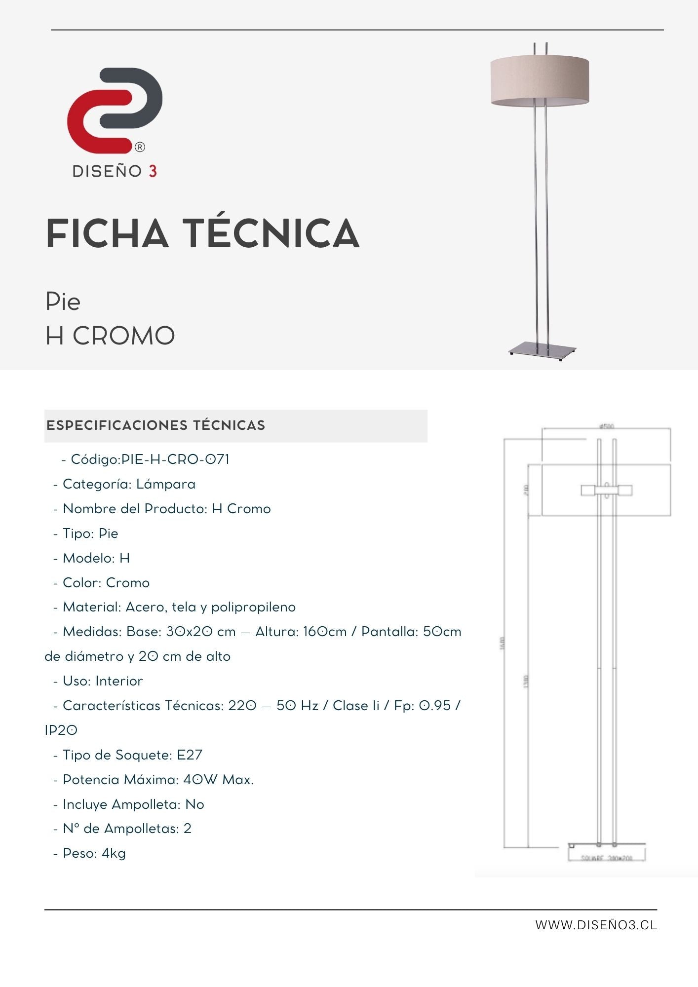 Medidas: 30x20 cm – Altura: 160cm / Pantalla: 50cm de diámetro y 20 cm de alto