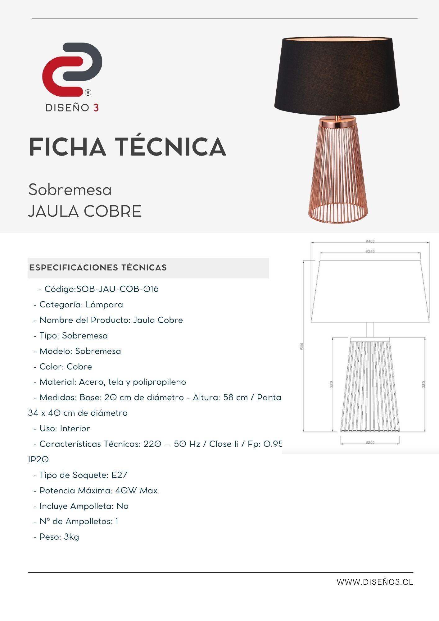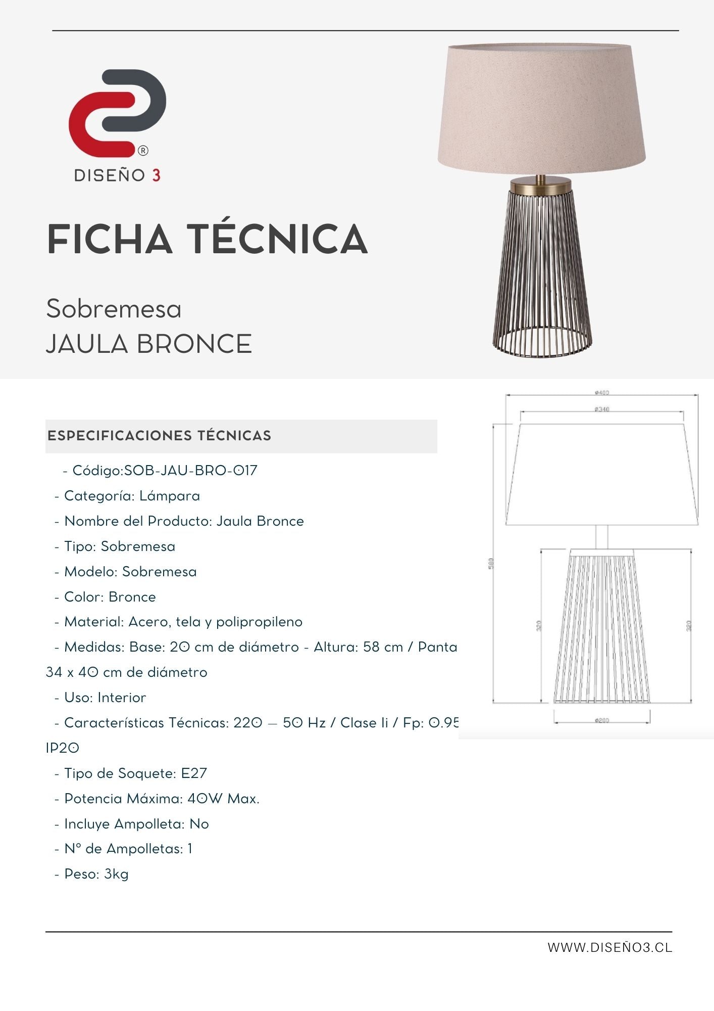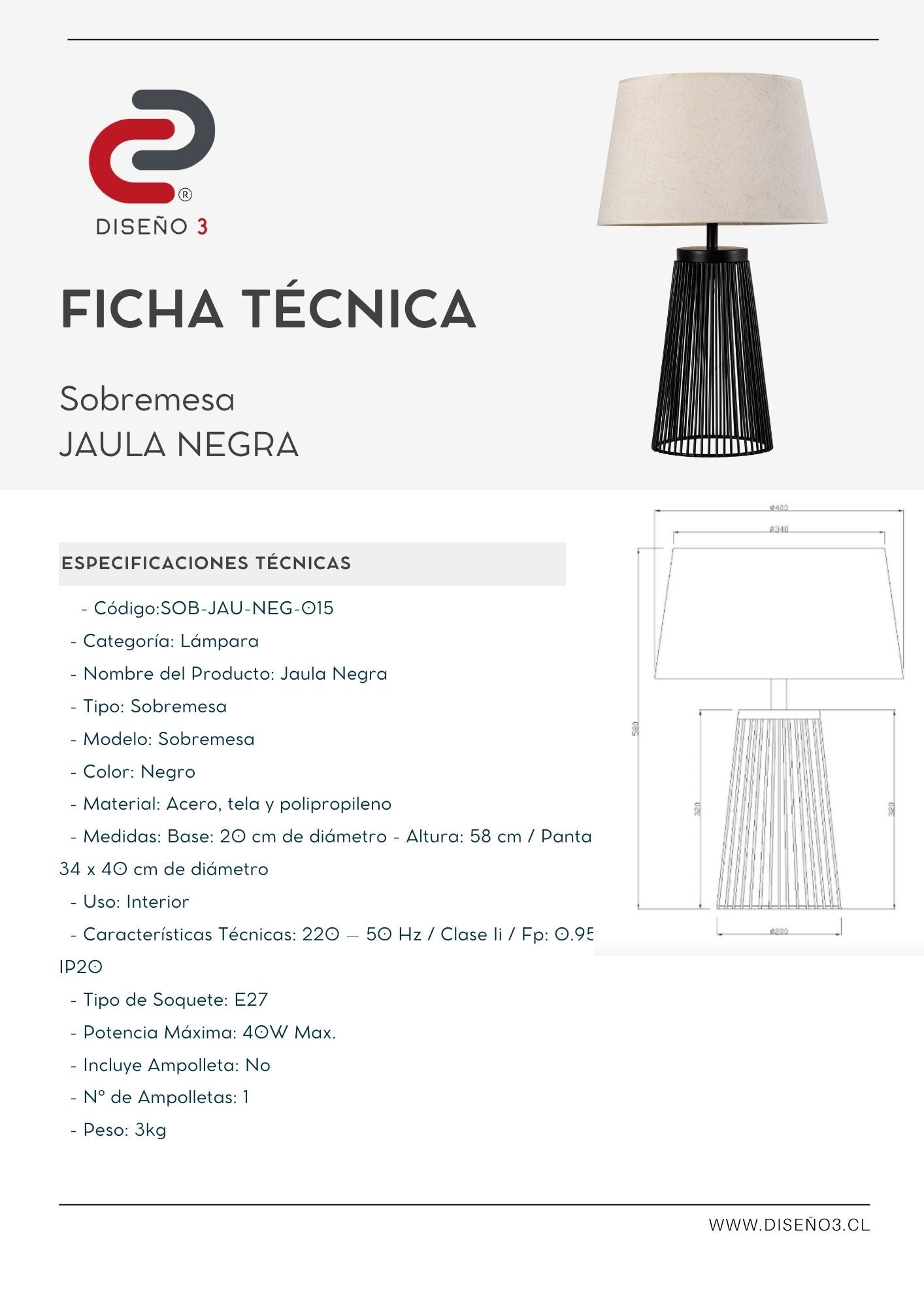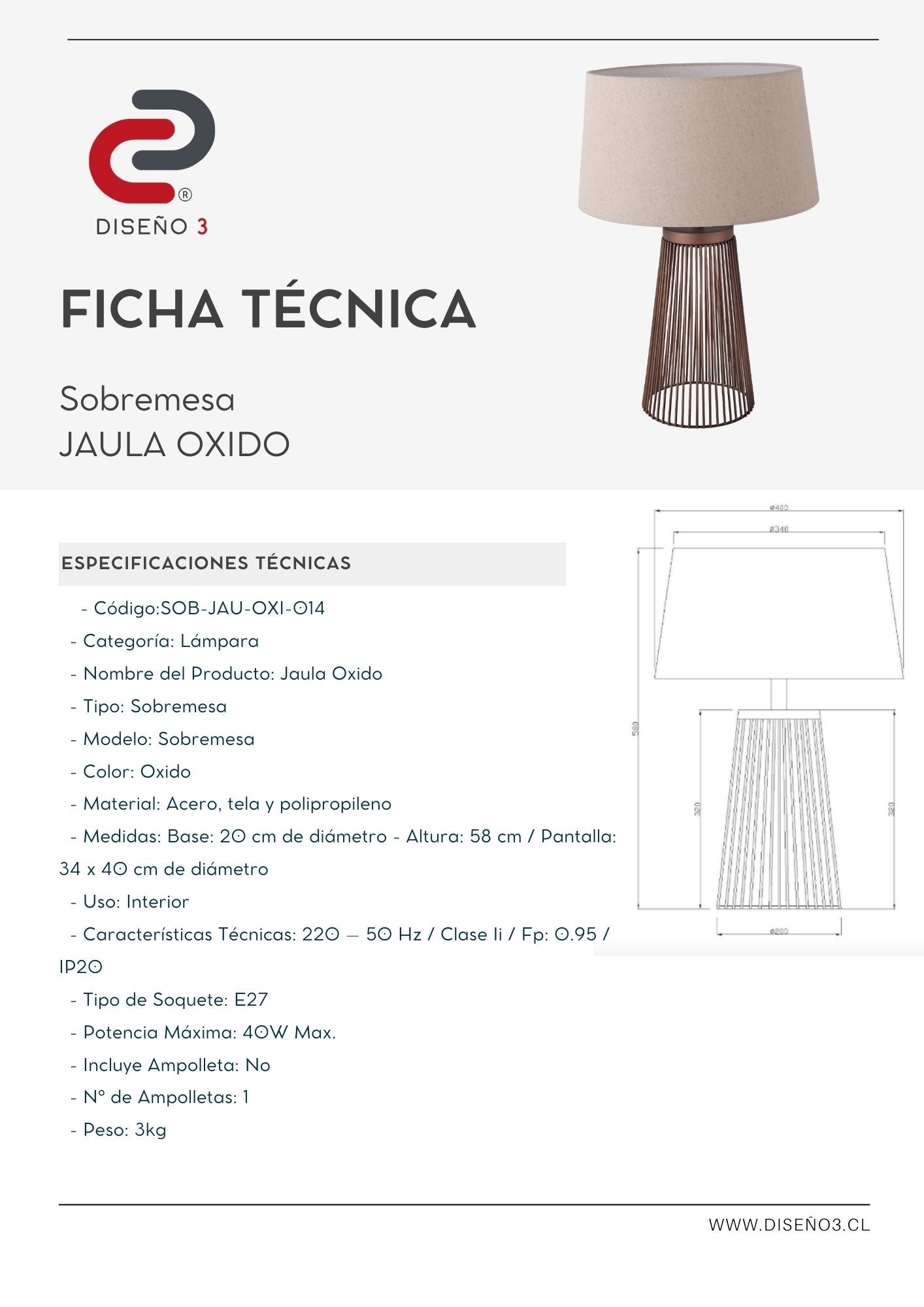 Peso: 3kg.