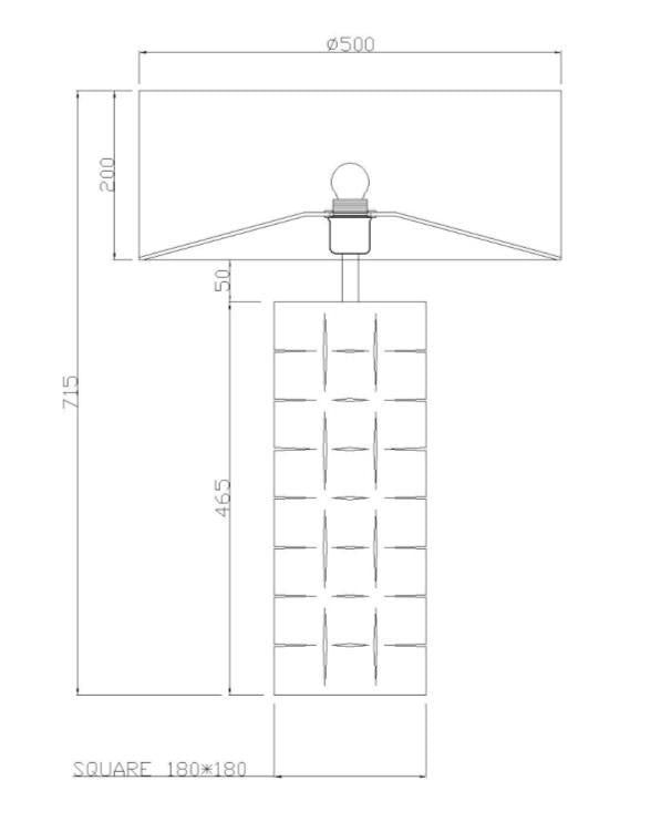 Medidas: Base: 18 x 18 cm - Altura: 71,5 cm / Pantalla: 50 cm de diámetro x 20 cm de alto